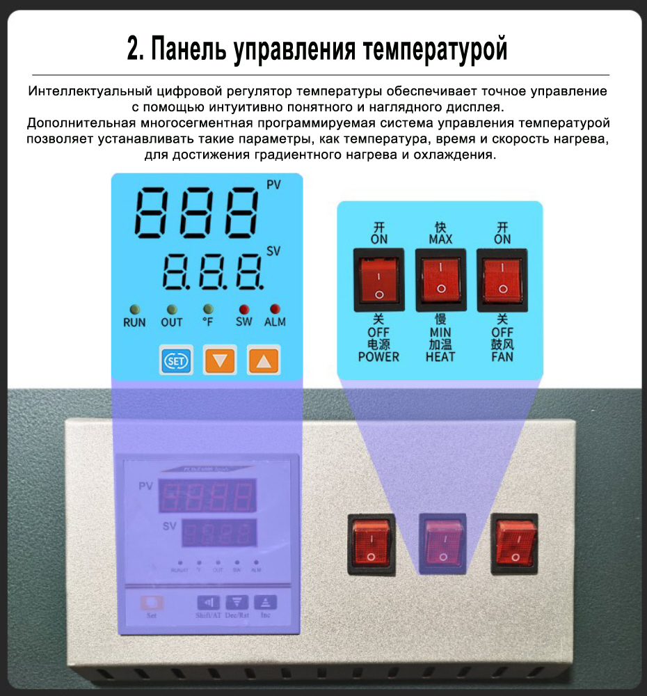 - Программируемый сегментированный регулятор температуры